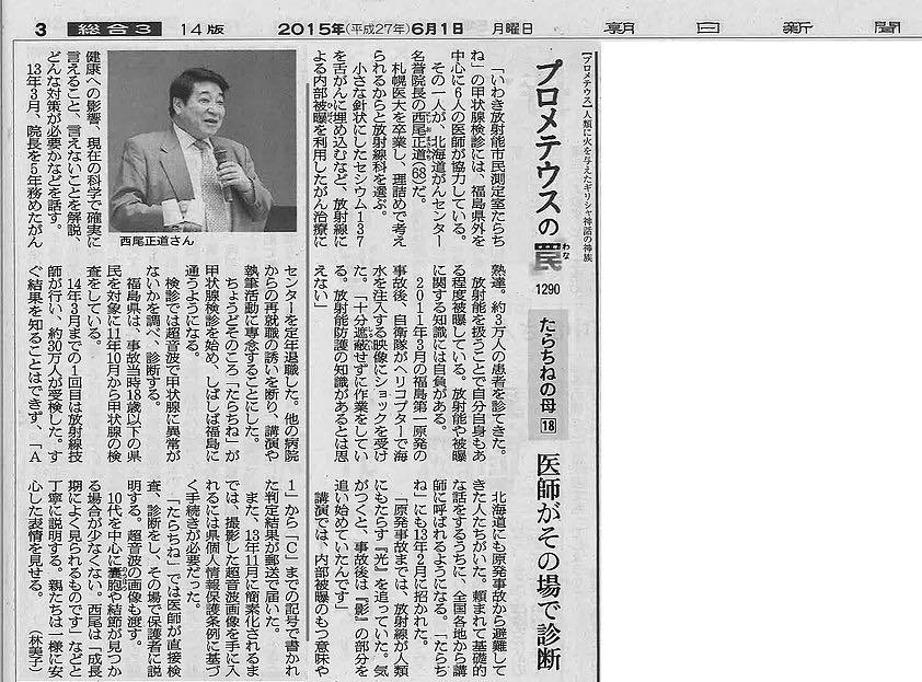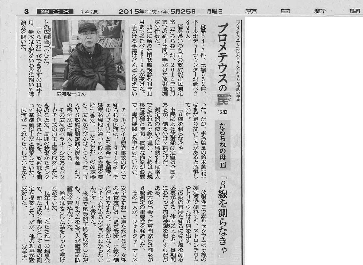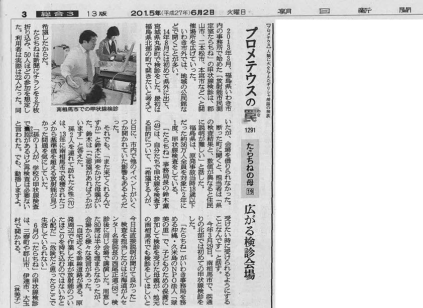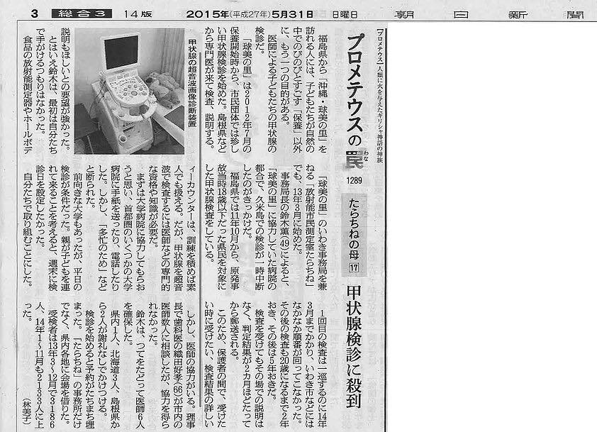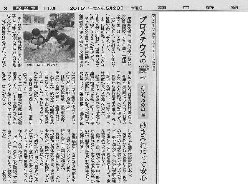 2015年5月27日~6月2日の朝日新聞朝刊3面の連載記事「プロメテウスの罠」にて、球美の里が紹介されました。