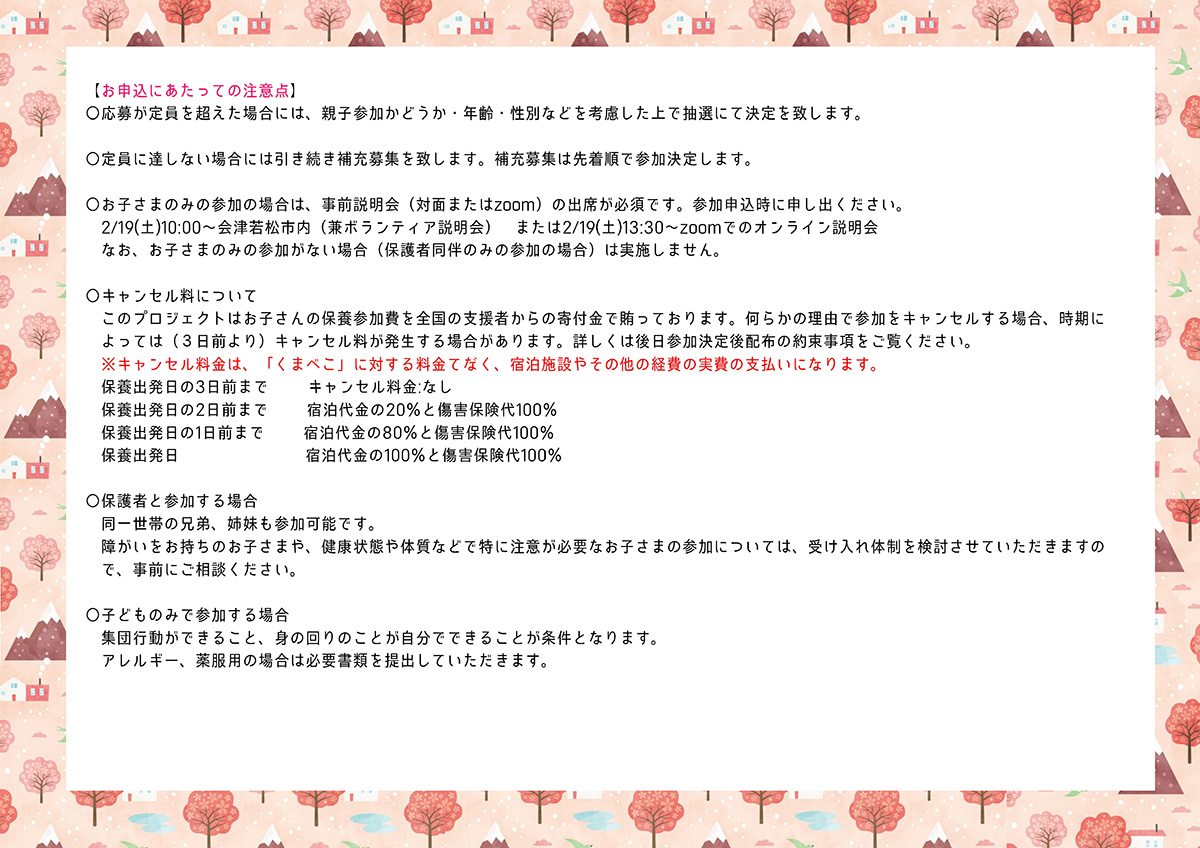 ※2021年12月以降にファミリー保養に参加された方は抽選の対象外になりますので、ご了承ください。