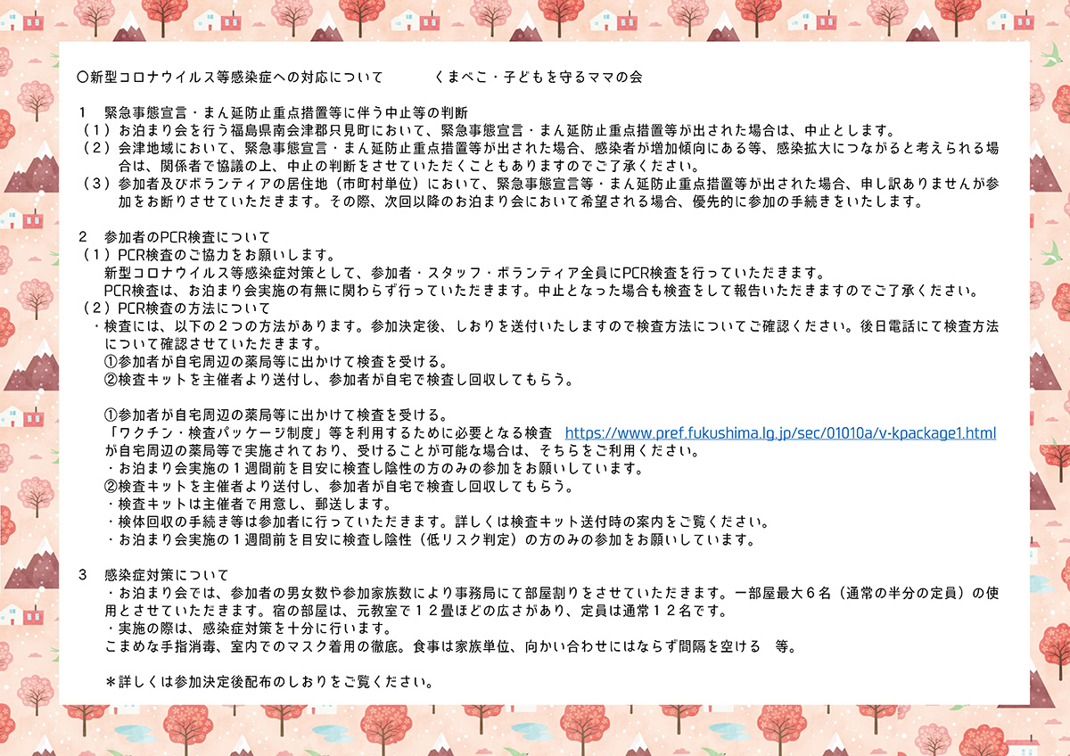 2022年9月から2023年1月までのファミリー保養については、多くの募集があり、募集終了となりました。