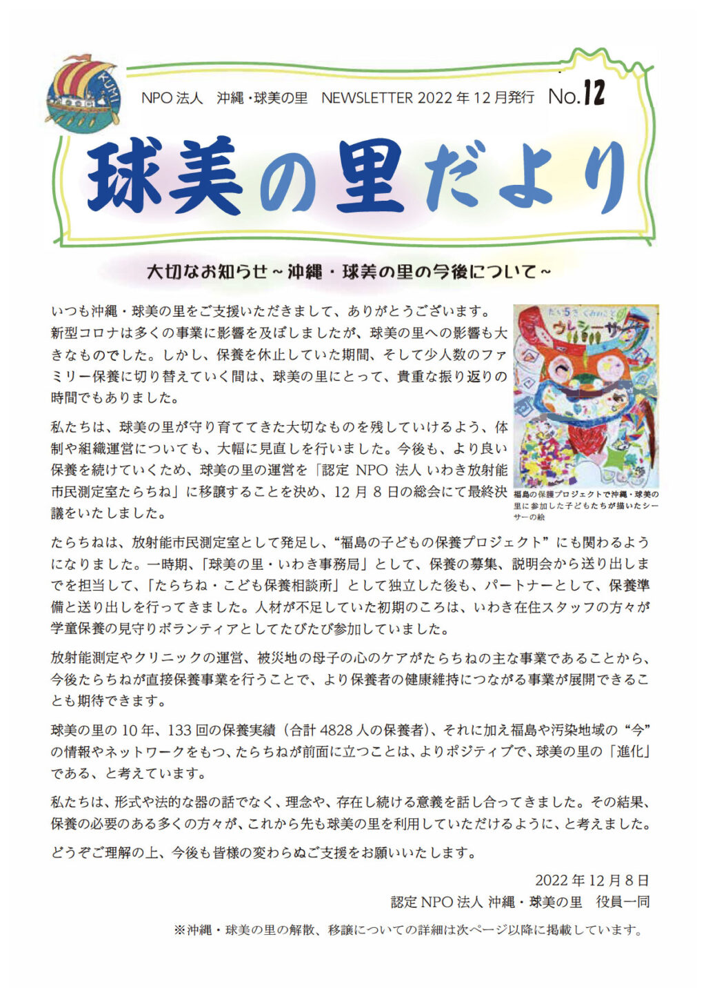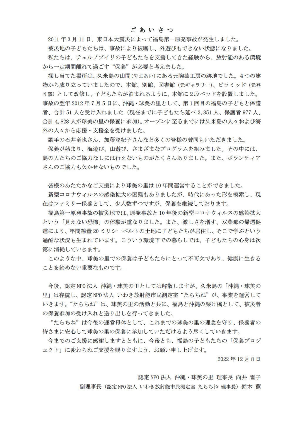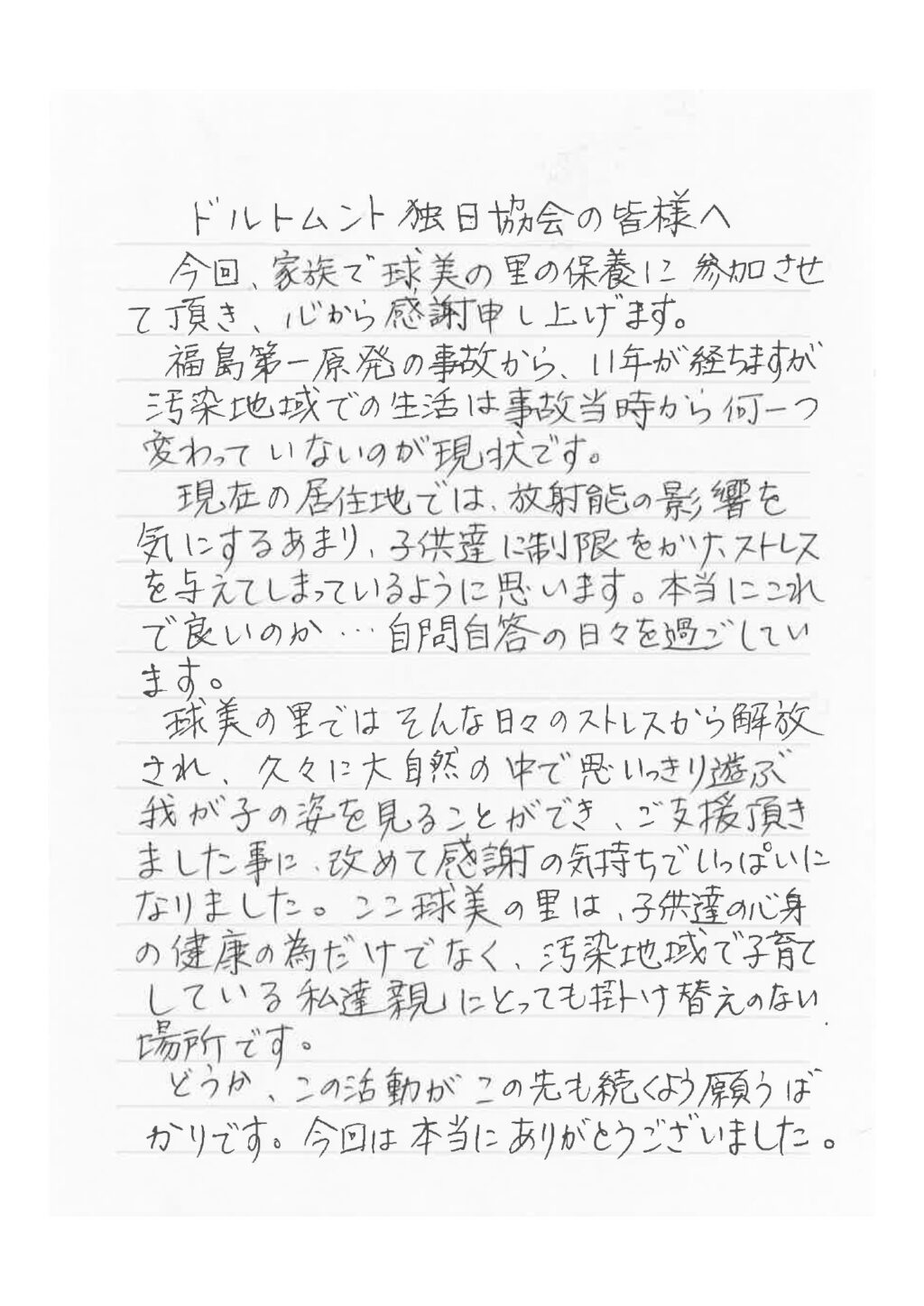 参加費を除いた保養にかかる費用はすべてご寄付によるものです。