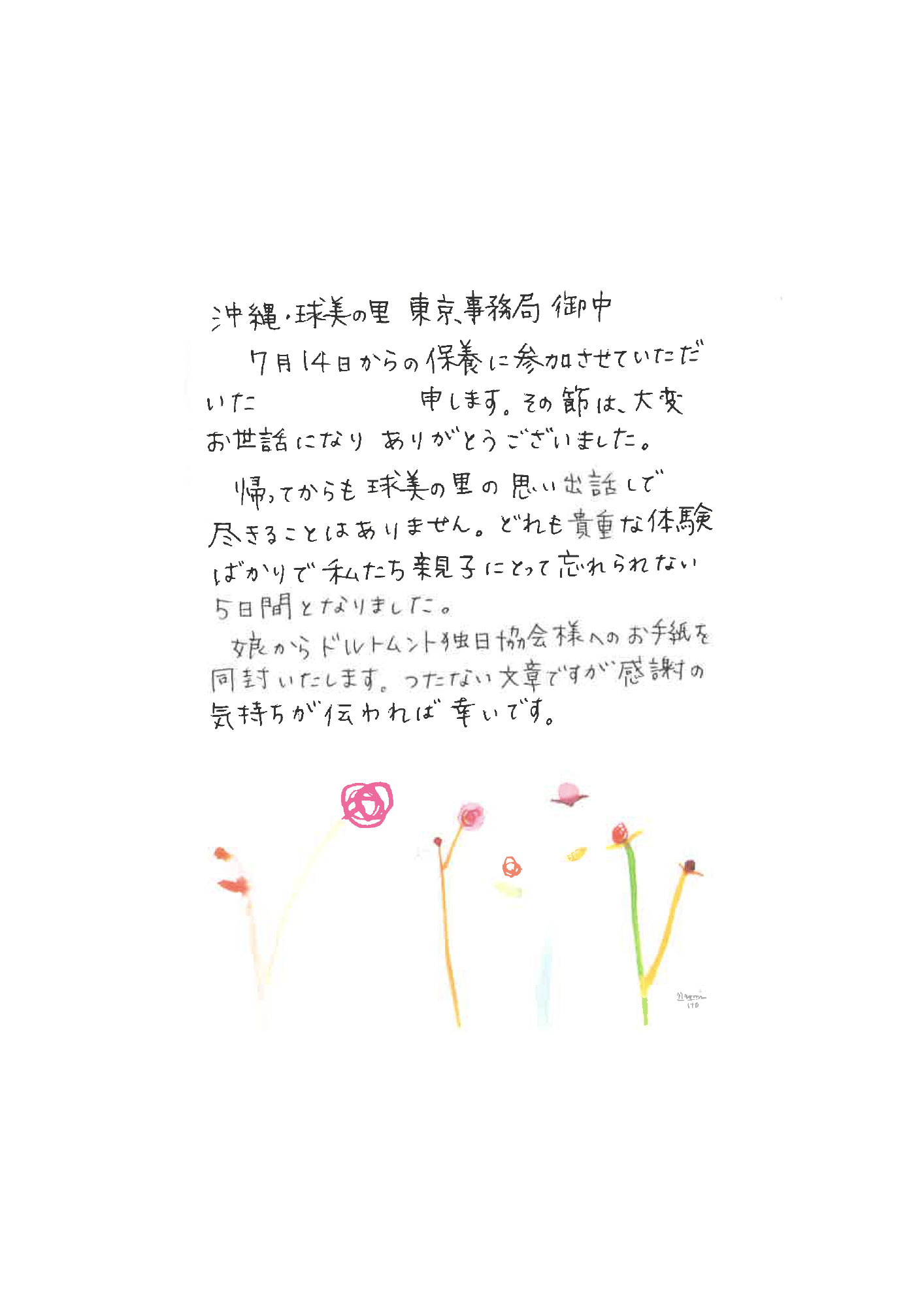 ※台風やコロナ等で保養期間を移動することはできません。また、飛行機の欠航などにより久米島への渡航が当初の日程よりずれた場合であっても帰りのお日にちは変わりません。