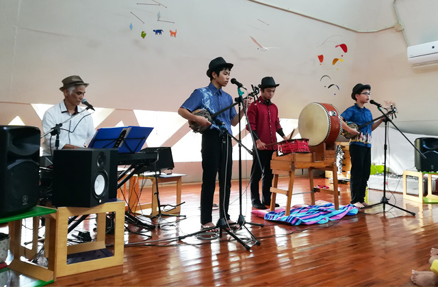 地元久米島の小学生から高校生までの子ども達中心の民謡グループ。保養のたびに来て頂き、沖縄の民謡をライブで演奏してもらっています。オリジナル曲の「球美の里にめんそーれ」は、沖縄の新唄大賞を受賞、ハワイにも遠征にいくほどの実力です。素敵な歌声と素晴らしい演奏に感動します。